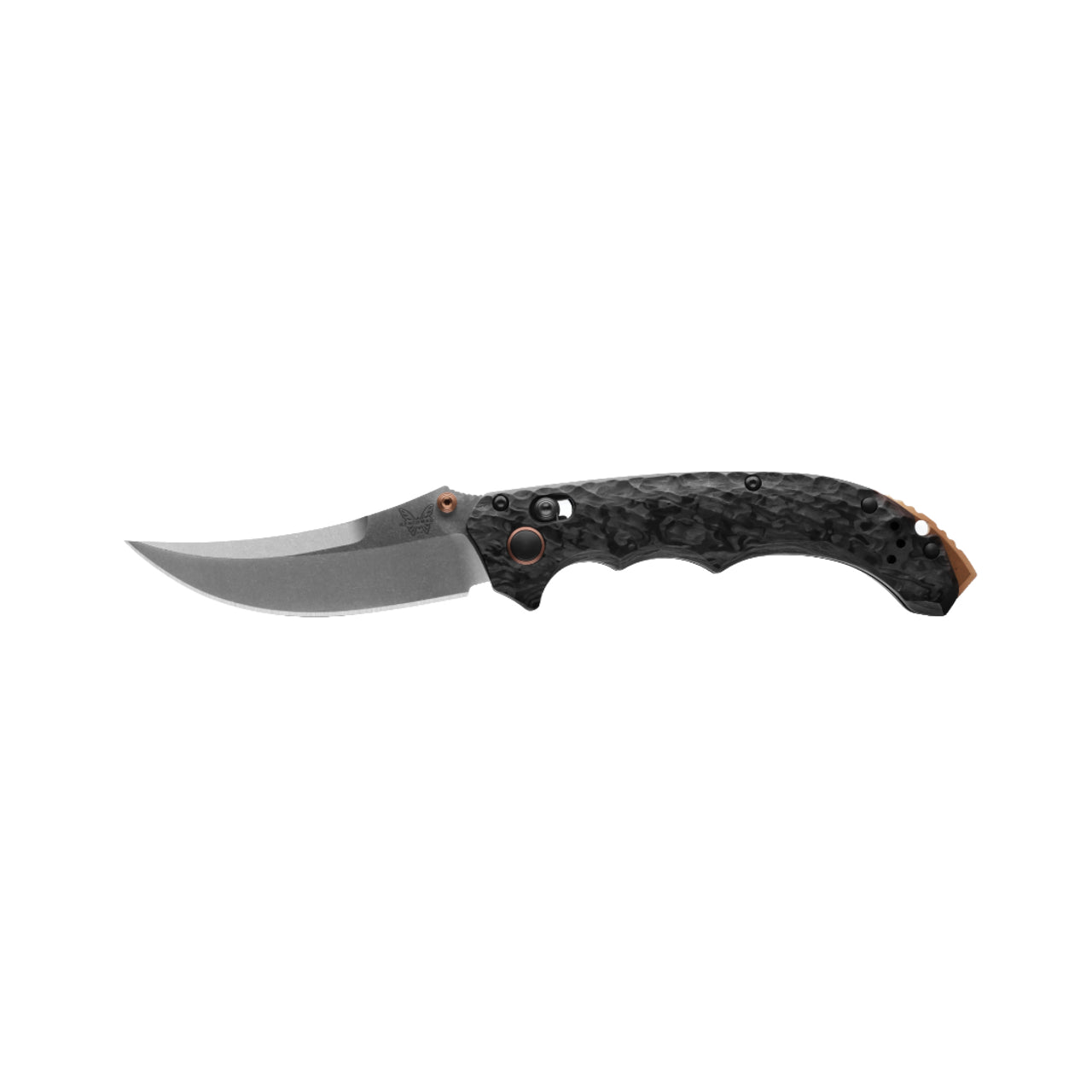 Benchmade 865-02 Mini Bedlam AXIS Folding Knife 3.45" S90V Satin Scimitar Blade, Marbled Carbon Fiber Handles