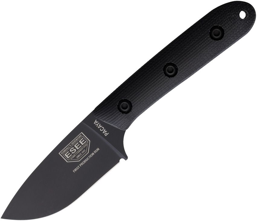 ESEE Knives PACAYA3V-B Pacaya Fixed Blade Knife 3" CPM-3V Black Cerakote Drop Point Blade, Black Canvas Micarta Handles, Kydex Sheath with Clip Plate