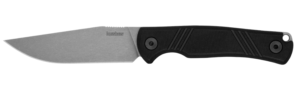 Kershaw 1089 Pack Mule Fixed Blade Knife 3.9" N690 Stonewashed Clip Point Blade, Black G10 Handles, Kydex Sheath