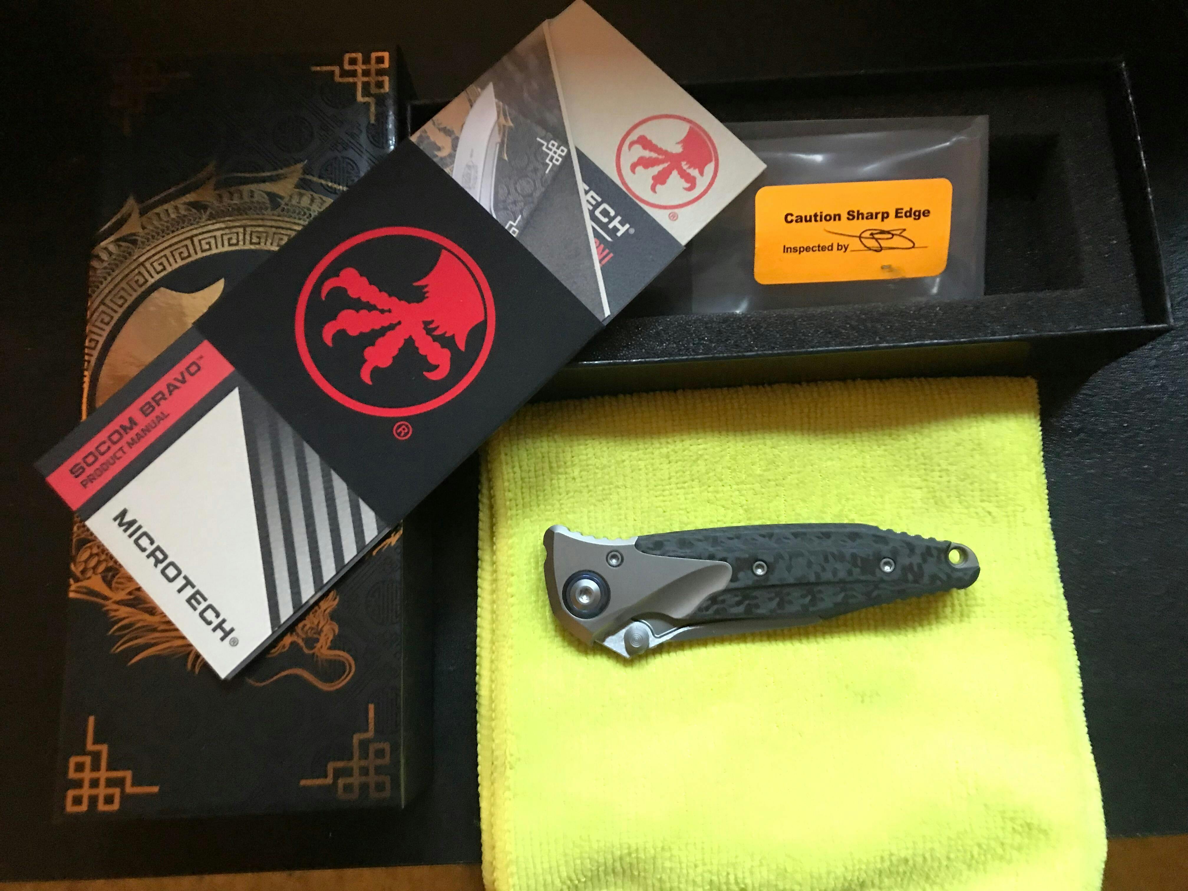 MICROTECH SOCOM BRAVO MINI MCT260M7CFTI 16265 FRAMELOCK M390 BEAD BLAST BLADE, TITANIUM & CARBON FIBER HANDLE EDC - MADE IN USA