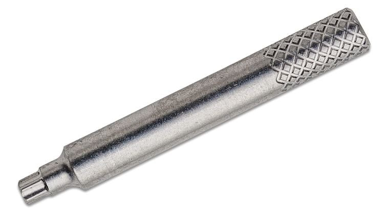 If you've ever had to disassemble your Griptilian, Bugout, Osborne, or other Benchmade knife that features an Axis Lock, you know all too well how difficult reassembly can be; Flytanium has developed a game-changing tool that functions as a locking key, Torx bit, and punch to make modding your Benchmade easier than ever! Designed to fit in the D-notch shaped pivot to keep the liners, axis bar, spring, blade, and washers held together while replacing hardware, scales, or other accessories you may want to install. Initially developed as a way to make things easier for Flytanium's team to test install scales during their quality control processes, the Flytanium Pivot Tool for Benchmade Knives offers a rather painless way to remove and re-install your pivot assembly on your .187" diameter pivot Benchmade knives.