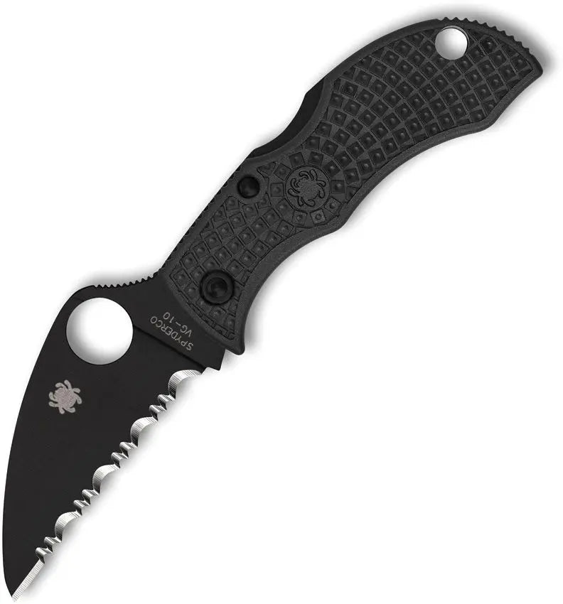Spyderco Manbug Folding Knife 1.97" VG10 Black TiCN Wharncliffe Serrated Blade, Black FRN Handles, Lockback - MBKWSBK