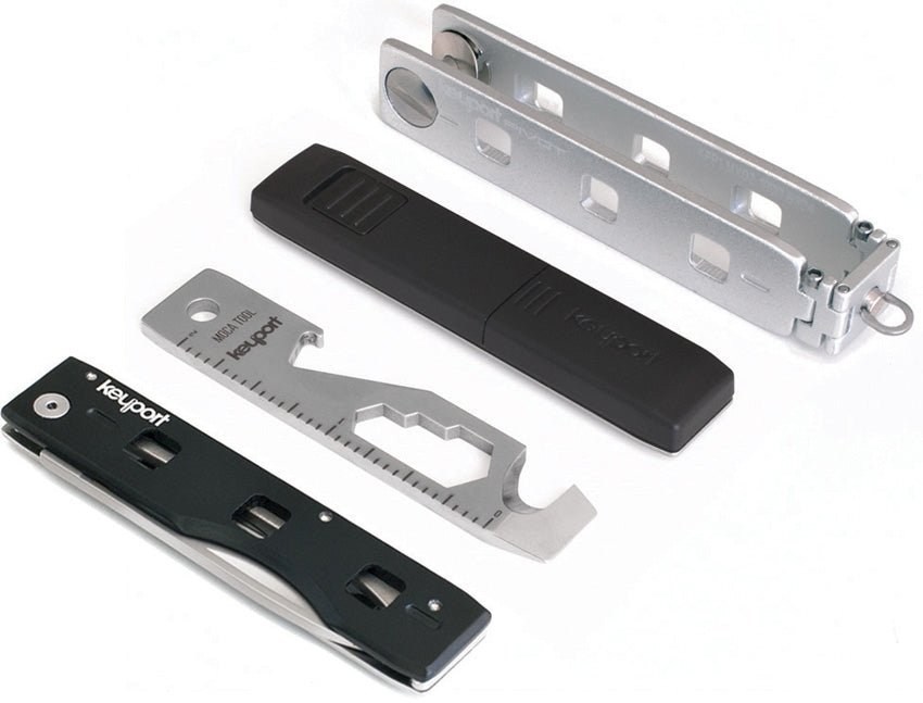 3.25" closed. Red ABS handle. Tools include: Large blade l Small blade l Can opener l Screwdriver tip l Bottle opener l Wire stripper l Reamer with sewing eye l Corkscrew l Toothpick l Tweezers l Keyring. Boxed.