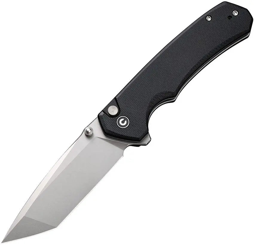 CIVIVI Knives Button Lock Brazen Flipper Knife 3.46" 14C28N Stonewashed Tanto Blade, Black G10 Handles - C19059C-1